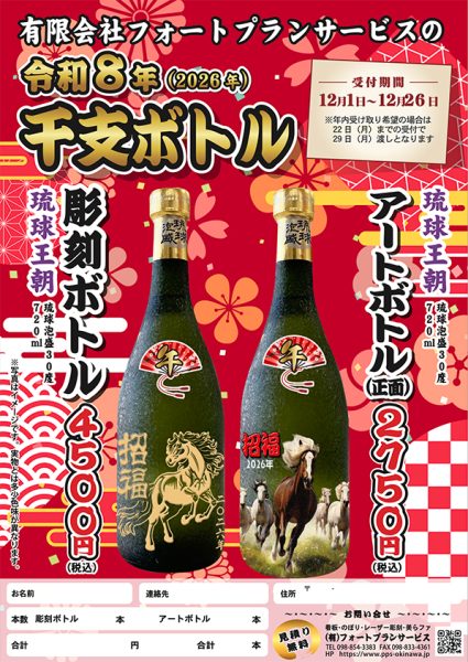 毎年恒例のフォートプランサービスオリジナル干支ボトルの販売が、今年も始まりました。